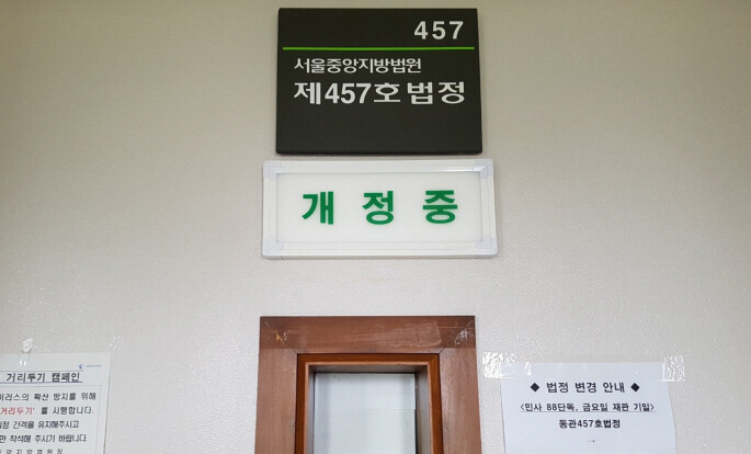 | ▲21일 한앤코와 홍원식 남양유업 회장 본안소송에서 홍원식 회장과 한상원 사장이 법정에 증인으로 섰다. /사진=이호영 기자 |