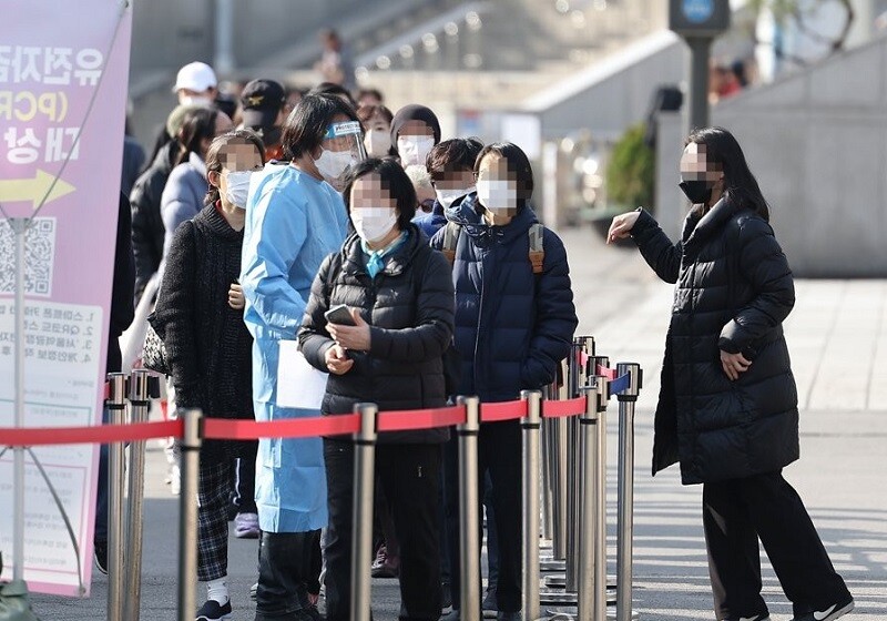 | ▲ 27일 오전 서울역 광장에 설치된 코로나19 임시선별 검사소를 찾은 시민들이 검사를 기다리고 있다./사진=연합뉴스 제공 |