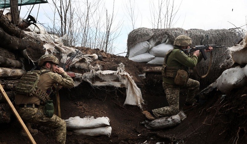 | ▲ 우크라이나 동부 루한스크 전선에 배치된 우크라이나 병사들이 참호 속에서 러시아군과 교전하고 있다./사진=연합뉴스 제공 |