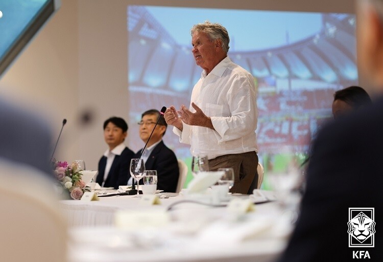 당시 월드컵 4강 신화를 지휘한 거스 히딩크 전 한국 축구 대표팀 감독도 내한해 2022 카타르 월드컵에 나서는 벤투호에 "전 세계가 보고 싶어 하는 축구를 펼치기를 바랍니다"라며 인사를 꺼냈다.