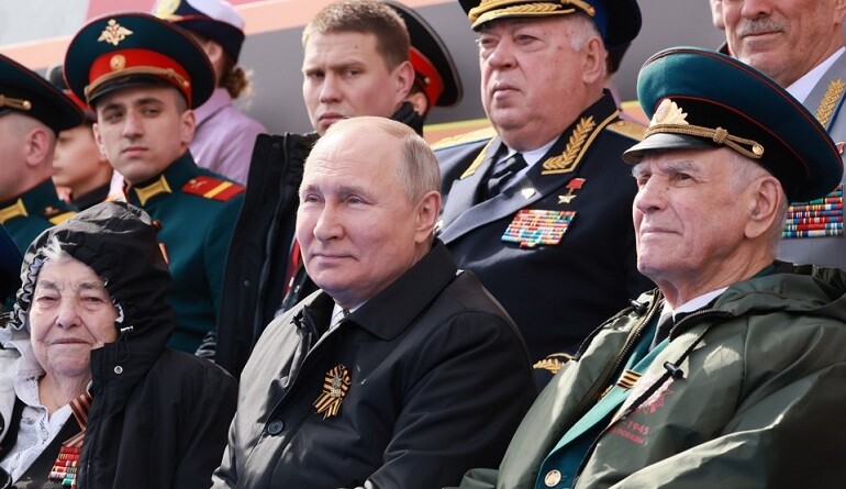 | ▲ 블라디미르 푸틴(가운데) 러시아 대통령이 지난 5월 9일(현지시간) 모스크바 붉은광장에서 열린 제2차 세계대전 종전기념일(러시아 전승절) 군사 퍼레이드를 참관하고 있다./사진=연합뉴스 제공 |