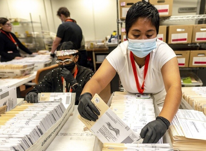 | ▲캘리포니아 우편 투표 집계의 모습/사진=연합뉴스 제공 |