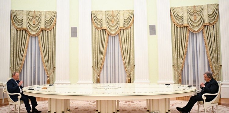 | ▲ 지난달 모스크바를 방문해 블라디미르 푸틴 러시아 대통령과 만난 안토니우 구테흐스 유엔 사무총장/사진=연합뉴스 제공 |