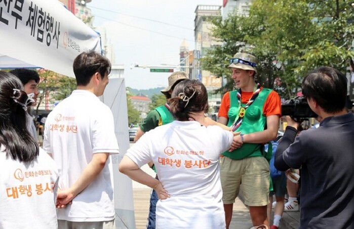 | ▲한화손해보험 대학생 봉사단이 8월 한 달간 학교 캠퍼스를 비롯한 서울 시내에서 일원에서 일반 시민들을 대상으로 우리 사회가 직면한 사회 문제들을 슬기롭게 해결하자는 내용의 캠페인을 진행한다고 밝혔다./사진=연합뉴스 제공 |