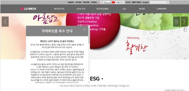 한편 앞서 이달 6일 LG생활건강은 자사 홈페이지에 식약처로부터 해당 물티슈 제품에 대한 판매 중지 및 회수, 폐기 명령을 받았다고 공지하면서부터 논란이 일었다.