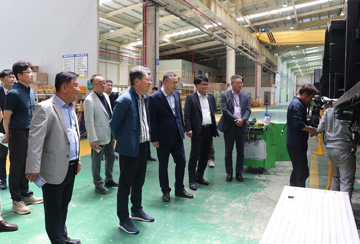 | ▲KG 모빌리티 곽재선 회장이 라인 투어를 하고 있다.(사진 왼쪽 2번째 곽재선 회장) |