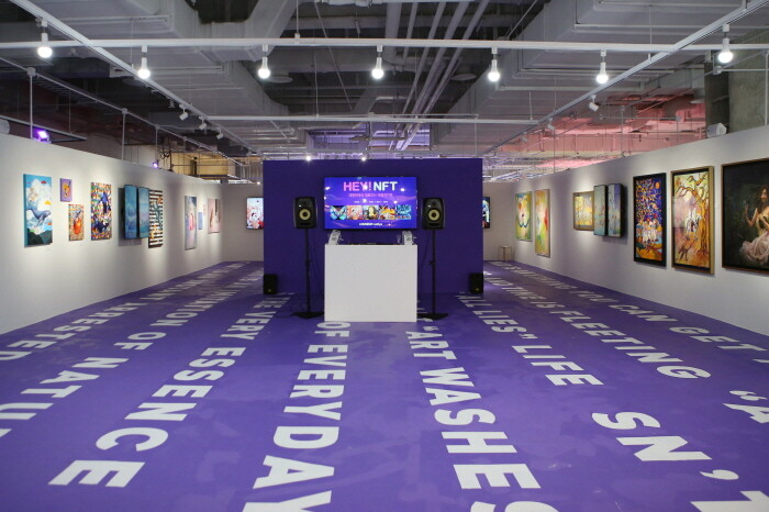 AK&홍대 3층에 약 215평(710㎡) 국내 최대 규모로 선보이는 '헤이, NFT'는 NFT 아트 전시와 구매, 소통이 접목된 이색 오프라인 마켓 플레이스다.