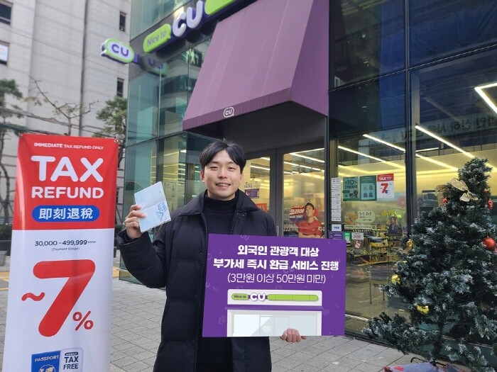 CU는 부가세 환급 수요가 높은 주요 관광 지역을 포함한 50여 점포에 해당 서비스를 우선 적용하고 서비스 대상점을 내년 말까지 전국 1000여점으로 확대할 계획이다.