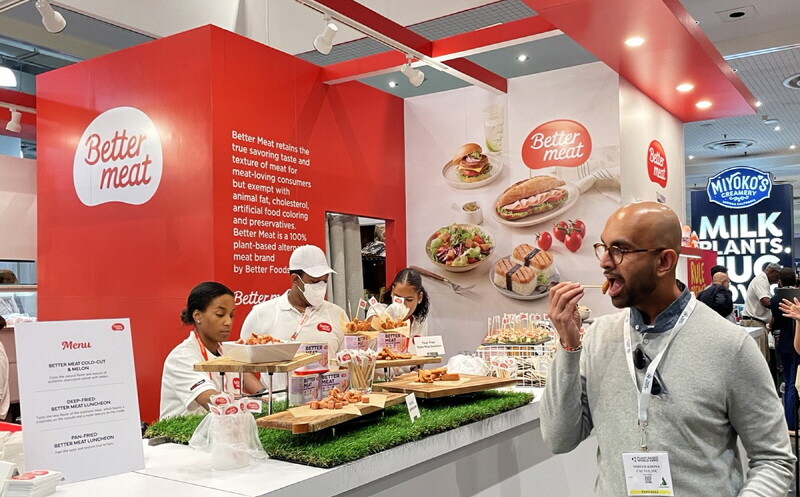 또 주로 식물성 식품 원료를 선보이는 대안 식품 업체들과 달리 신세계푸드는 현지 셰프들이 전시관에서 직접 '베러미트'를 활용한 샌드위치·파스타·카네페·타코·튀김 등을 매일 2000명 이상에게 제공하며 가정뿐 아니라 레스토랑·프랜차이즈·카페 등 외식 매장에서의 메뉴 확장성을 강조했다.