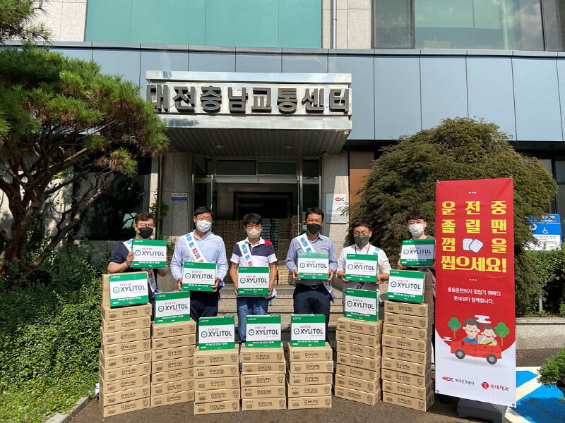 올 추석 '졸음 방지 껌 씹기 캠페인'은 한국도로공사 대전충남본부와 협업해 진행했다. 휴게소 방문 귀성객 대상으로 교통 안전 정보를 전하고 롯데제과 자일리톨껌과 얼린 생수 등을 나눠줬다.