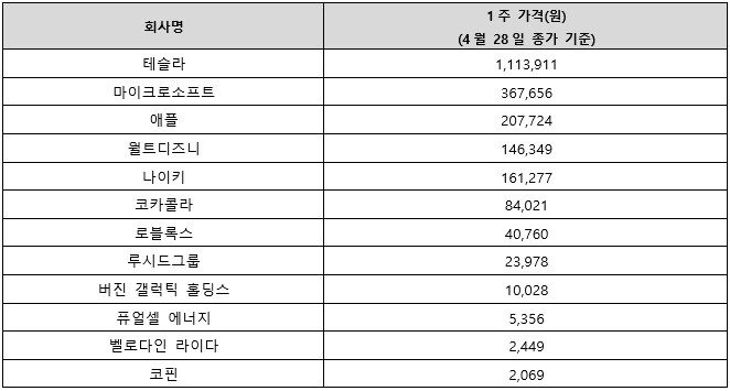 | ▲랜덤 동봉된 미국주식 및 1주 가격 |
