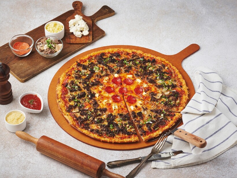 '한근 소불고기 피자'는 1근(600g) 내외 소불고기 토핑을 L사이즈(13인치) 피자 보다 2배 넓은 면적의 18인치 초대형 피자에 가득 채운 프리미엄 피자다.