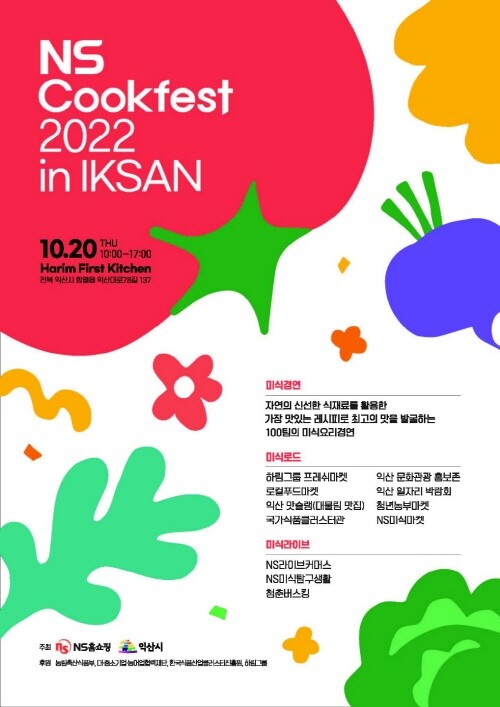 'NS 쿡페스트 2022 in 익산'는 20일 오전 10시부터 오후 5시까지 진행된다. 누구나 현장에 방문해서 100개팀의 요리경연과 각종 프로그램을 참관하고 즐길 수 있다.