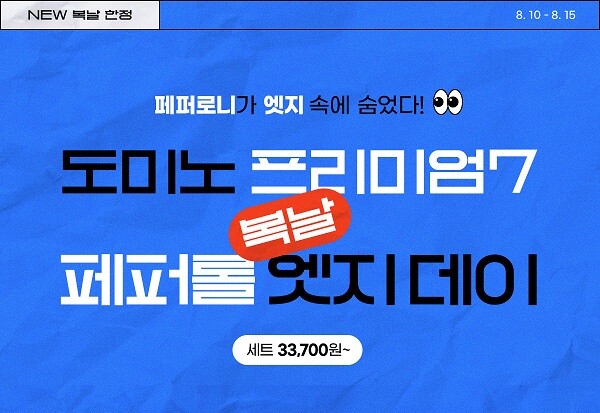 도미노피자 관계자는 “마지막 삼복더위인 말복을 기념해 피자와 치킨을 할인한 가격으로 제공하는 ‘페퍼롤 엣지데이’ 프로모션을 기획했다”며 “마지막 더위를 맛있는 도미노피자와 함께 이겨내시기를 바란다”고 말했다.