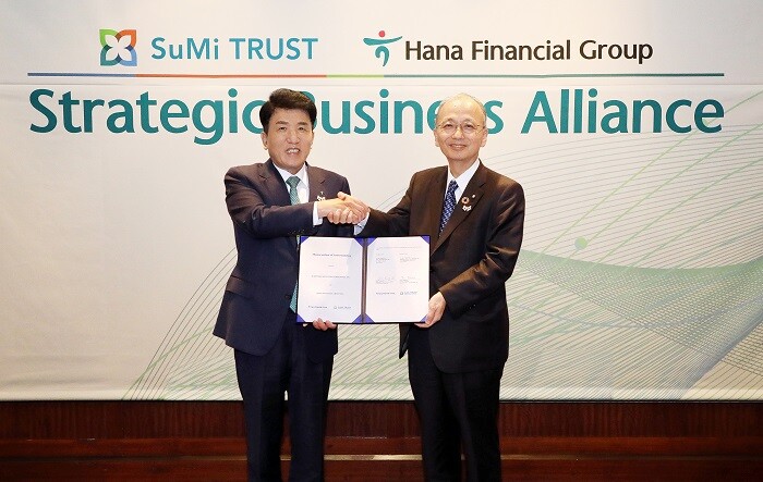 [소셜밸류=김완묵 기자] 하나금융그룹(회장 함영주)은 일본 미쓰이스미토모 신탁그룹(스미트러스트)과 지난 3일 글로벌 금융사업 협력관계 강화를 위한 업무협약을 체결했다고 4일 밝혔다.