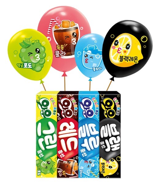 탱글포도는 청포도 빛깔과 같은 초록색 풍선을, 쿨소다는 청량한 소다맛에 어울리는 파랑풍선을, 톡톡콜라는 콜라를 연상하게 하는 빨강풍선을 각각 불 수 있어 색다른 재미를 제공한다. 이어 제품 패키지도 풍선 색깔에 맞춰 눈에 잘 띄도록 새롭게 단장했다.