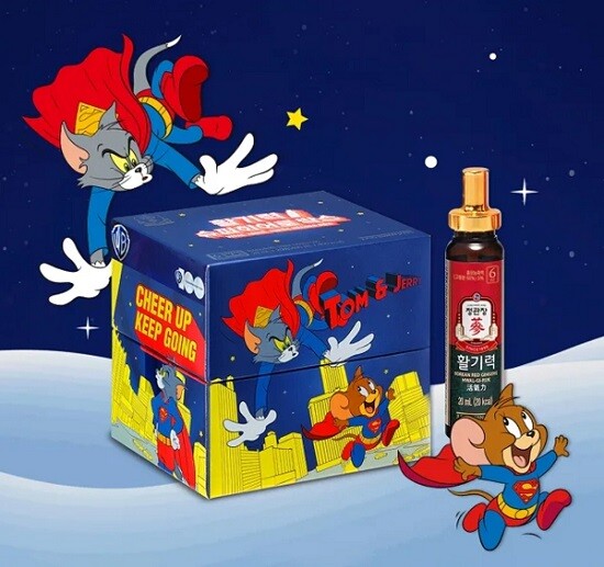 [소셜밸류=김완묵 기자] 정관장이 워너브라더스의 인기 애니메이션 캐릭터인 ‘톰과 제리’와 콜라보한 ‘활기력 슈퍼히어로박스(톰과제리편)’를 선보였다고 3일 밝혔다.