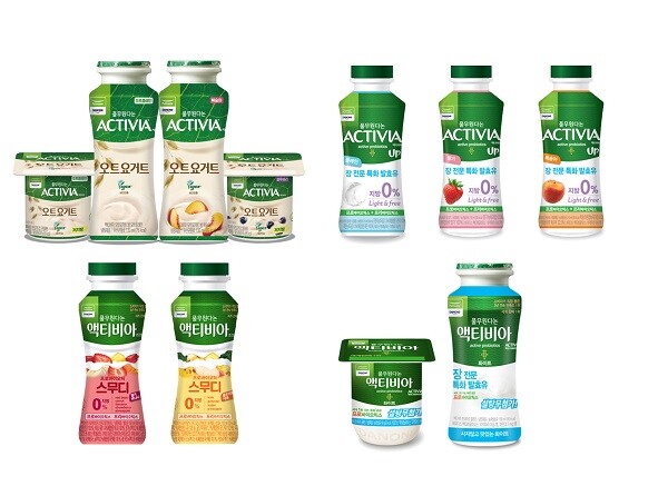 | ▲(왼쪽 위에서부터)액티비아오트요거트, 액티비아 UP, 액티비아 프로바이오틱스무디, 액티비아 화이트 제품 이미지/사진=풀무원다논 제공 |