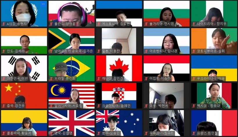 | 청소년들 온라인 모의 유엔총회 참여 모습. /사진=에코맘코리아 제공. |