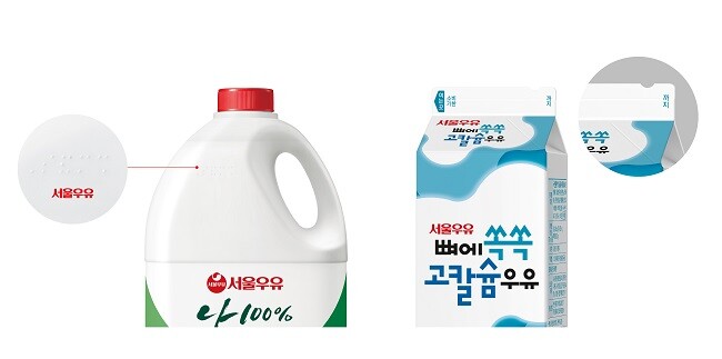 이에 서울우유는 나100%우유 2.3L와 아침에주스 대용량 제품에 점자 표기를 확대 실시하고, 뼈에쏙쏙 고칼슘우유 930mL에 카톤팩 특성을 감안해 노치(notch:지붕형 종이팩 상단 일부의 한곳을 반원형으로 도려낸 표시) 표기 도입을 계획 중에 있다.