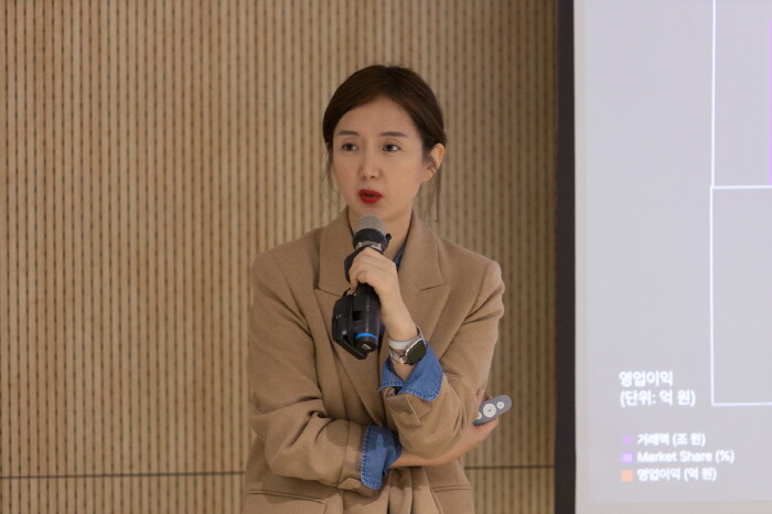 | ▲안정은 11번가 사장이 타운홀 미팅에서 발표하고 있다. /사진=11번가 제공. |