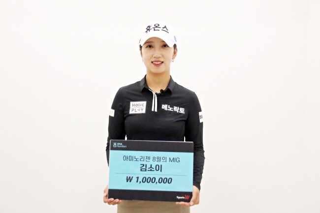 지난 8월 KLPGA투어에서 가장 인상적인 활약을 펼친 선수로 선정되면서 아미노리젠 8월의 MIG를 수상한 김소이는 “다른 선수들이 MIG로 뽑히는 걸 기사로 많이 봤는데 제가 8월에 MIG로 뽑히게 될 줄은 정말 예상하지 못했다. 이런 뜻 깊은 상을 주셔서 너무 기쁘고 감사하다”고 소감을 밝혔다.