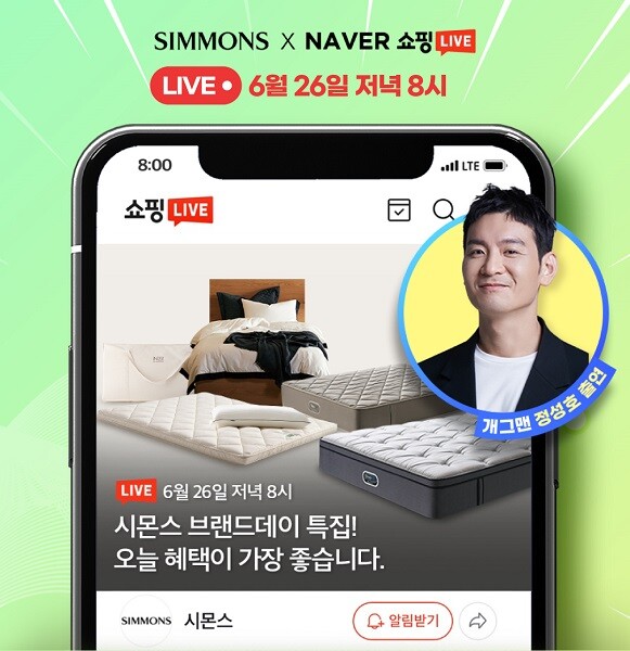 | ▲시몬스 침대가 개그맨 정성호와 함께 ‘네이버 쇼핑라이브’를 진행한다./사진=시몬스 침대 제공 |