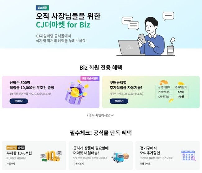| ▲CJ제일제당이 공식몰 CJ더마켓에 소상공인을 위한 B2B 전문관 ‘CJ더마켓 for Biz’를 오픈한다./사진=CJ제일제당 제공 |