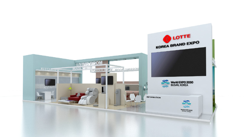| ▲롯데그룹 홈쇼핑·백화점·마트·면세점·하이마트·코리아세븐 롯데 유통 6개사가 함께 독일과 미국에서 여는 '롯데-대한민국 브랜드 엑스포' 쇼룸형 통합 전시 부스 조감도. 유통 6개사 협력 중소 100개사와 미거래 국내 우수 중소 100개사가 참가, 독일과 미국 등 해외 판로 개척에 나선다. /사진=롯데지주 제공. |