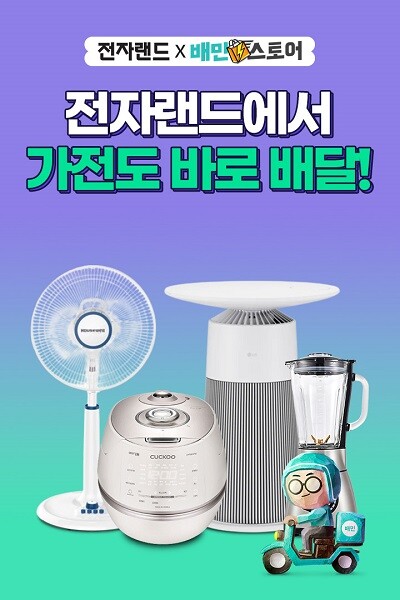 전자랜드 관계자는 “엔데믹 시대에 접어들며 매장에 직접 방문해 가전제품을 구매하는 소비자들이 늘어났지만, 온라인과 애플리케이션 등을 통한 비대면 구매 수요도 아직 많다고 분석했다”며 “배달의민족과의 이번 협업으로 소비자들이 전자랜드에서 판매하는 다양한 가전제품을 빠르고 편리하게 구매할 수 있게 될 것”이라고 밝혔다.
