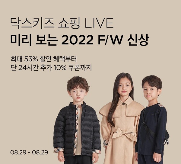 | ▲마켓컬리가 프리미엄 아동복 브랜드 ‘닥스키즈’ 가을/겨울 신상품 출시 기획전과 함께 최대 53% 할인 혜택을 제공하는 쇼핑 라이브를 진행한다./사진=마켓컬리 제공 |