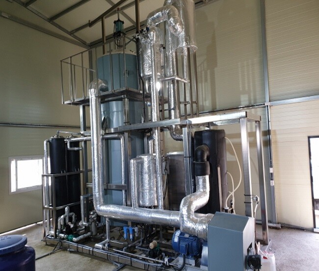 | ▲청호나이스는 플랜트사업부는 가축분뇨처리 과정에서 일어나는 각종 악취를 저감하고 축산폐수를 방류 수질기준에 적합하도록 처리하는 감압증발 가축분뇨처리설비를 선보였다./사진=청호나이스 제공 |