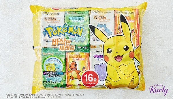 마켓컬리에서 이날 오전 11시부터 판매를 시작하는 포켓몬김은 16봉이 한 세트로 되어 있다. 피카츄부터 잠만보까지 총 9종의 유명 캐릭터가 포장지에 그려져 있다.