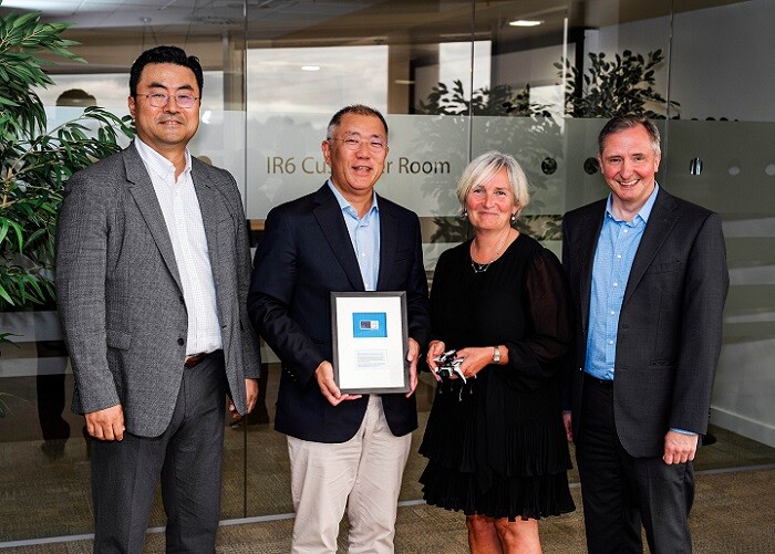 | ▲(왼쪽부터) 김흥수 현대차 부사장, 정의선 현대차그룹 회장, 앤 마리 홈즈 인텔 반도체 제조그룹 공동 총괄 부사장, 닐 필립 인텔 팹24 운영 총괄 부사장이 7일(현지시간) 아일랜드 레익슬립에 위치한 ‘인텔 아일랜드 캠퍼스’ 팹24에서 기념촬영을 하고 있다./사진=현대차그룹 제공 |