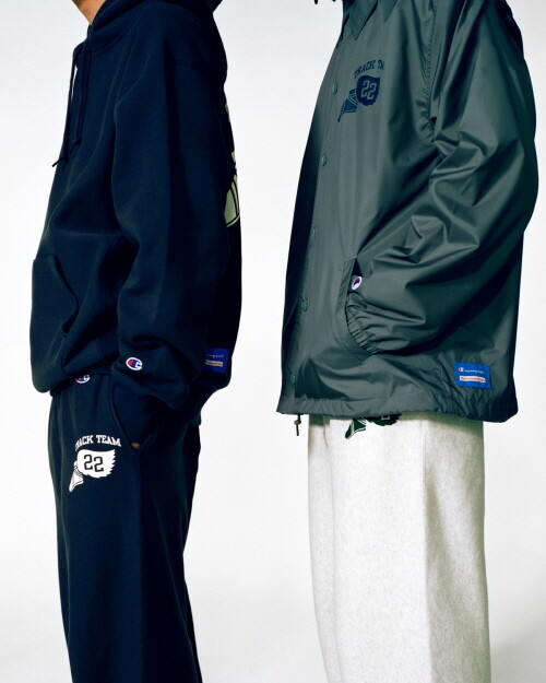이번 협업 컬렉션은 챔피온 브랜드 헤리티지 공법인 '리버스 위브'와 디스이즈네버댓 특유의 여유 있고 트렌디한 핏을 접목한 게 특징이다. 협업 콘셉트로는 '트랙팀'을 선정하고 과거 대학교 운동부 학생들이 경기장 밖 일상에서 즐겨 입던 스웨트셋업 유니폼에서 착안한 제품을 선보인다.