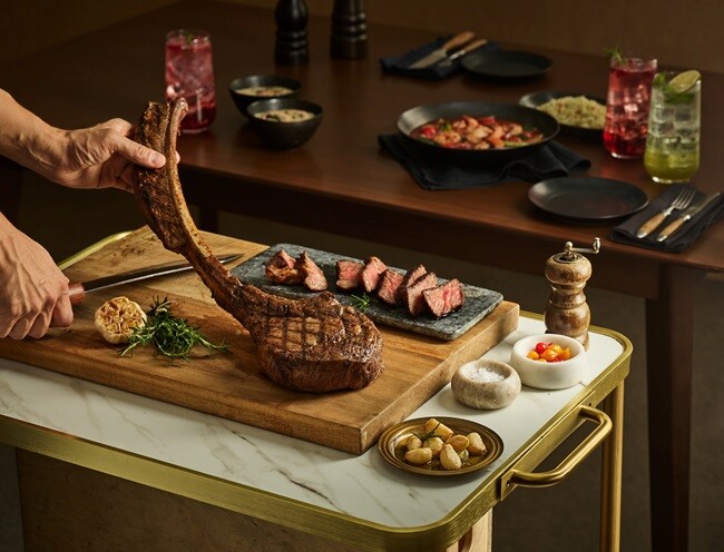 신메뉴 인피니티 킹마호크 스테이크는 매장 직원이 고객 테이블에서 스테이크를 직접 손질해 주는 카빙서비스를 더해 고객들에게 특별한 미식 경험을 선사한다.
