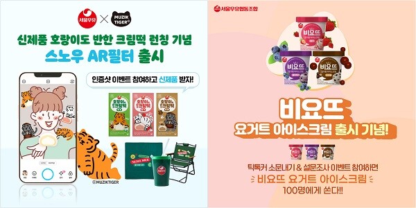 [소셜밸류=소민영 기자] 서울우유협동조합이 ‘호랑이도 반한 크림떡’과 ‘비요뜨 요거트 아이스크림’ 신제품 출시를 기념하며 MZ세대를 겨냥한 2가지 SNS 이벤트를 동시 진행한다고 23일 밝혔다.