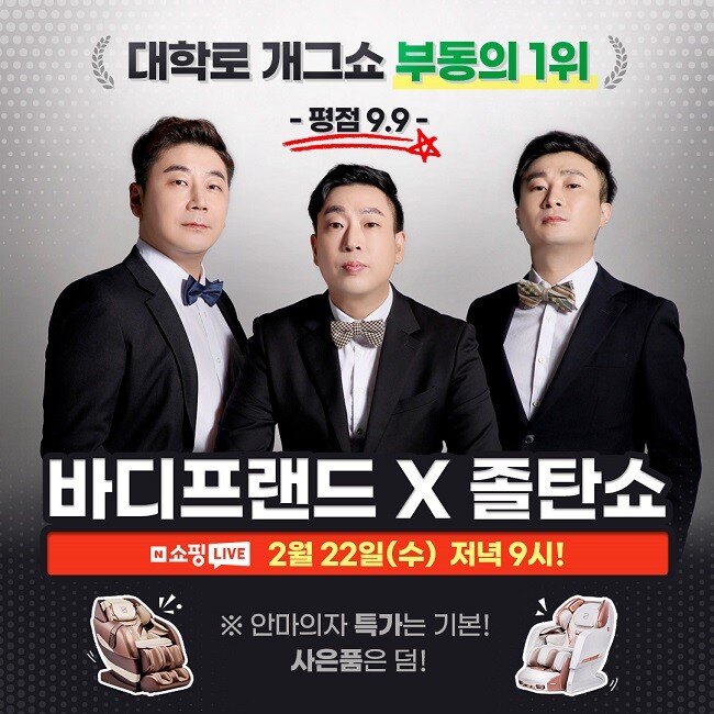 | ▲바디프랜드는 22일 수요일 네이버 쇼핑 라이브에서 유명 개그팀 ‘졸탄’과 함께 공연과 쇼핑이 어우러진 ‘바디프랜드 X 졸탄쇼’를 진행한다./사진=바디프랜드 제공 |