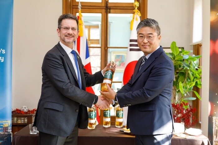 작년 12월 8일 주한영국대사관 대사관저에서 열린 계약 체결식에는 스티브 베이커 북아일랜드 부장관과 김관태 골든블루 인터내셔널 마케팅본부장 등 주요 관계자들이 참석했다. 계약 체결 후 한국 위스키 시장 현황에 대해 논의하는 시간을 가졌다.