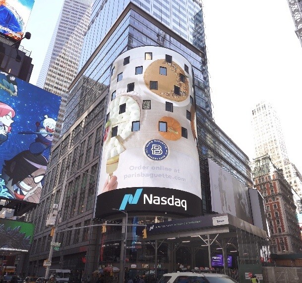 | ▲미국 맨해튼 타임스 스퀘어 전광판에서 파리바게뜨 크리스마스 시즌 케이크 소개 영상이 노출되고 있는 모습/사진=파리바게뜨 제공 |