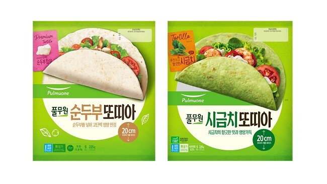 | ▲풀무원 신제품 순두부 또띠아, 시금치 또띠아/사진=풀무원식품 제공 |