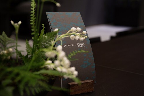 무채색 톤의 미니멀한 인테리어와 제주를 연상시키는 식물들이 비치된 오설록 팝업 스토어에서는 새로운 영문 로고와 함께 브랜드 소개를 위한 브로슈어를 제공한다.