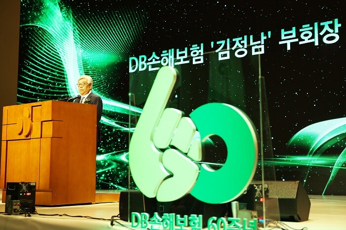 | ▲지난 4일 서울 용산구 드래곤시티호텔 그랜드볼룸홀에서 열린 창립 60주년 기념행사에서 김정남 부회장이 기념사를 하고 있다./사진=DB손해보험 제공 |