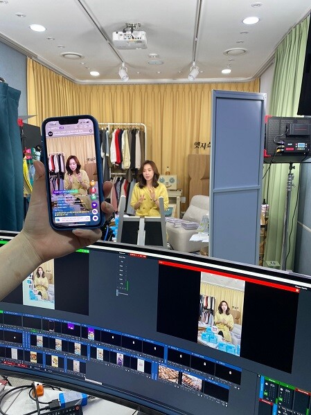 스튜디오 실제 현장이 모바일 화면에 전달되는 속도 차이를 줄여 라방(라이브커머스)의 최대 장점인 실시간 고객 소통을 강화하고 한층 더 생동감 높은 방송을 제공하자는 취지에서다.