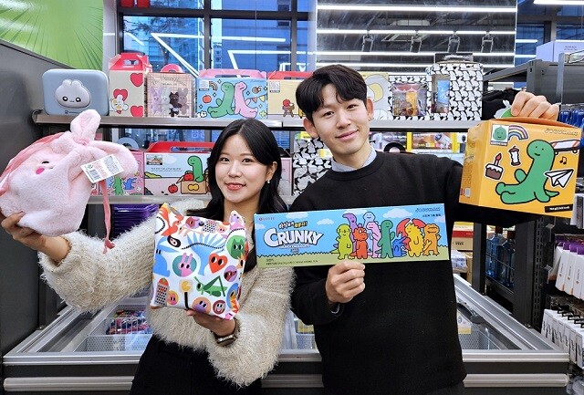 CU는 요즘 인기 캐릭터 ‘조구만’과 ‘토대리’와 콜라보한 상품 12종을 출시했다. 캐릭터를 그려 넣은 코스터 세트와 갑티슈 커버, 파우치 키링, 마우스 패드 등 실생활에서도 활용도 있는 제품들로 소비자들을 공략한다.
