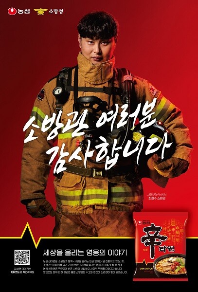 농심은 소방관의 사연이 담긴 신라면 한정판을 내놓고 소방관을 응원하는 버스정류장 광고를 진행한다. 또 신라면 한정판 묶음포장에 인터뷰 영상을 볼 수 있는 QR코드를 삽입해 전 국민에게 사연을 전할 예정이다.