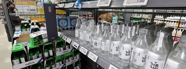 | ▲마트에 진열돼 있는 롯데칠성음료의 처음처럼 모습/사진=연합뉴스 제공 |