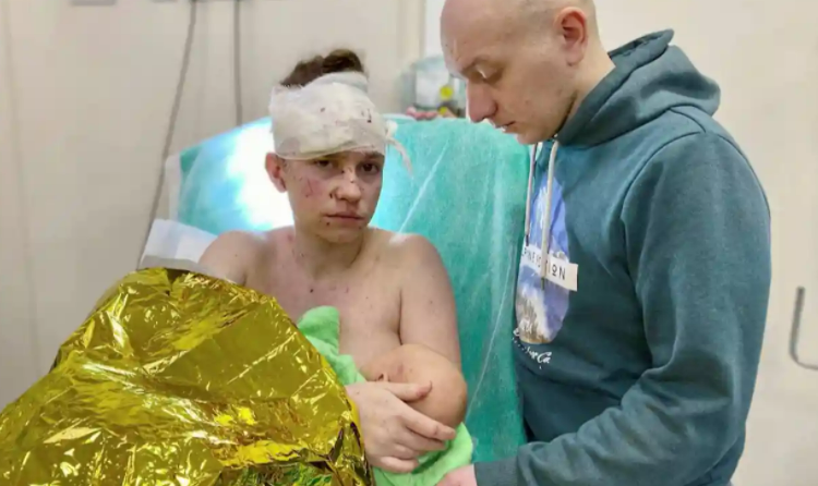 | ▲포탄에 피투성 산모과 신생아/사진=가디언 |