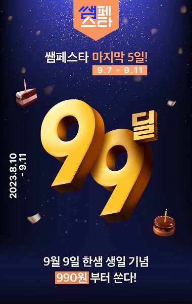 [소셜밸류=소민영 기자] ㈜한샘(대표 김유진)이 창립 53주년을 기념해 대한민국 대표 리빙 페스티벌 ‘쌤페스타’의 대미를 장식하는 할인 이벤트 ’99딜’을 진행한다고 8일 밝혔다.