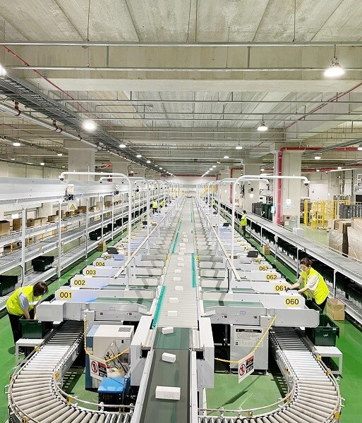 CJ대한통운 물류센터에서 자동화 설비를 따라 상품을 담은 박스가 이동하고 있다.